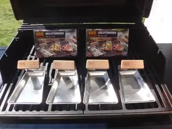 Aldi BBQ Grillpfännchen Test. Die Grillpfännchen von Aldi sind ein absolutes Muss für alle Grillfans. Jeder kann Leckereien wie vom Raclette jetzt auch auf auf dem Grill zubereiten und genießen. Die Aldi Grillpfännchen können mit Käse, Fleisch, Gemüse, kleingeschnittenen Fisch oder nach Lust und Laune belegt und nach dem Grillen direkt vom Pfännchen auf dem Teller verspeist werden. Die Pfännchen sind aus Edelstahl, mit abnehmbaren Holzgriff und werden mit zwei Holzspateln geliefert. Nehmen Sie die Holzgriffe auf jeden Fall für das Grill ab, denn diese werden beim Grillen heiss.